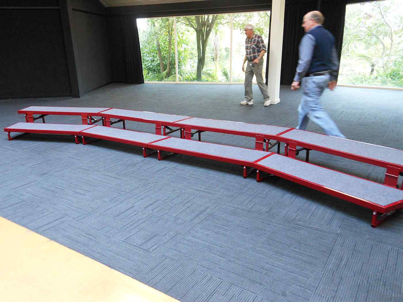 A compact folding riser for small choirs.